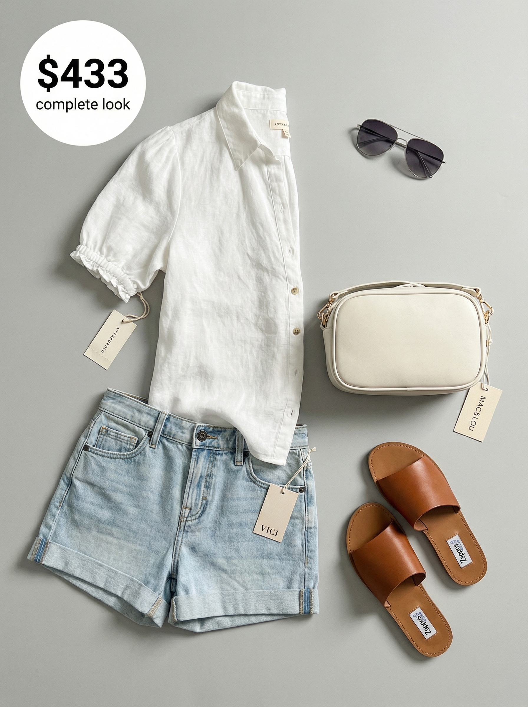 It’s all in the details. The puff sleeves on this white linen-blend blouse from Anthropologie ($108) add a feminine, on-trend detail that elevates it from a basic button-down. Made from 100% European linen, the top provides essential breathability for warm-weather sightseeing. It’s paired with light-wash denim shorts ($34.80) that feature a tailored, cuffed hem for a polished finish. The brand VICI is having a 40% OFF sale. Together, these pieces form a versatile and chic foundation for countless summer vacation outfits women can rely on.