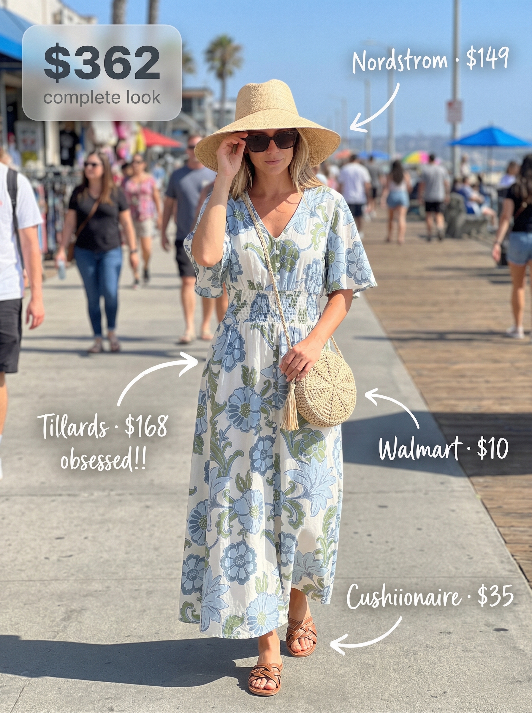 The affordable bag proved its durability in testing, holding a phone, sunscreen, and wallet without the straw weave stretching or breaking, and it currently holds a rating. The combination of the vibrant, flowing dress and natural-textured accessories creates an aspirational yet easily achievable summer look. This outfit perfectly captures a relaxed, island-escape mood that is ready for any sun-drenched destination.