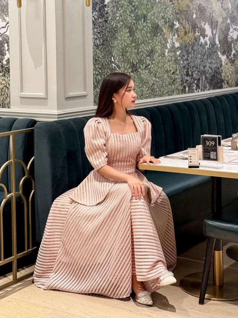 Ideal for brunch dates, gallery visits, or upscale casual outings. Pair with a cropped blazer for a more classy tone. Avoid heavy boots—they overpower the delicate pleats. A pink lip or dainty necklace adds personality without disrupting the design’s clean lines.