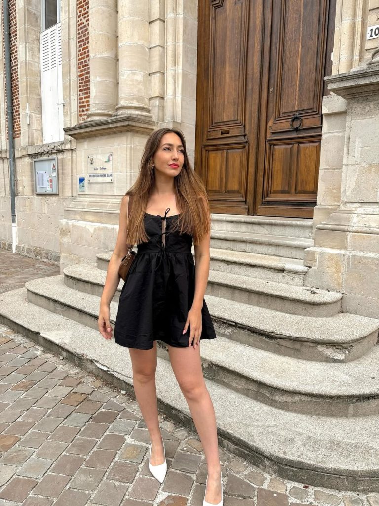 A great choice for city exploring, dinner dates, or chic daytime events. Add a denim jean jacket for a casual twist or a cropped blazer for a more classy look. Avoid bulky bags—sleek mini bags keep the proportions flattering. A delicate bracelet or cute hair clip adds personality without shifting the aesthetic.