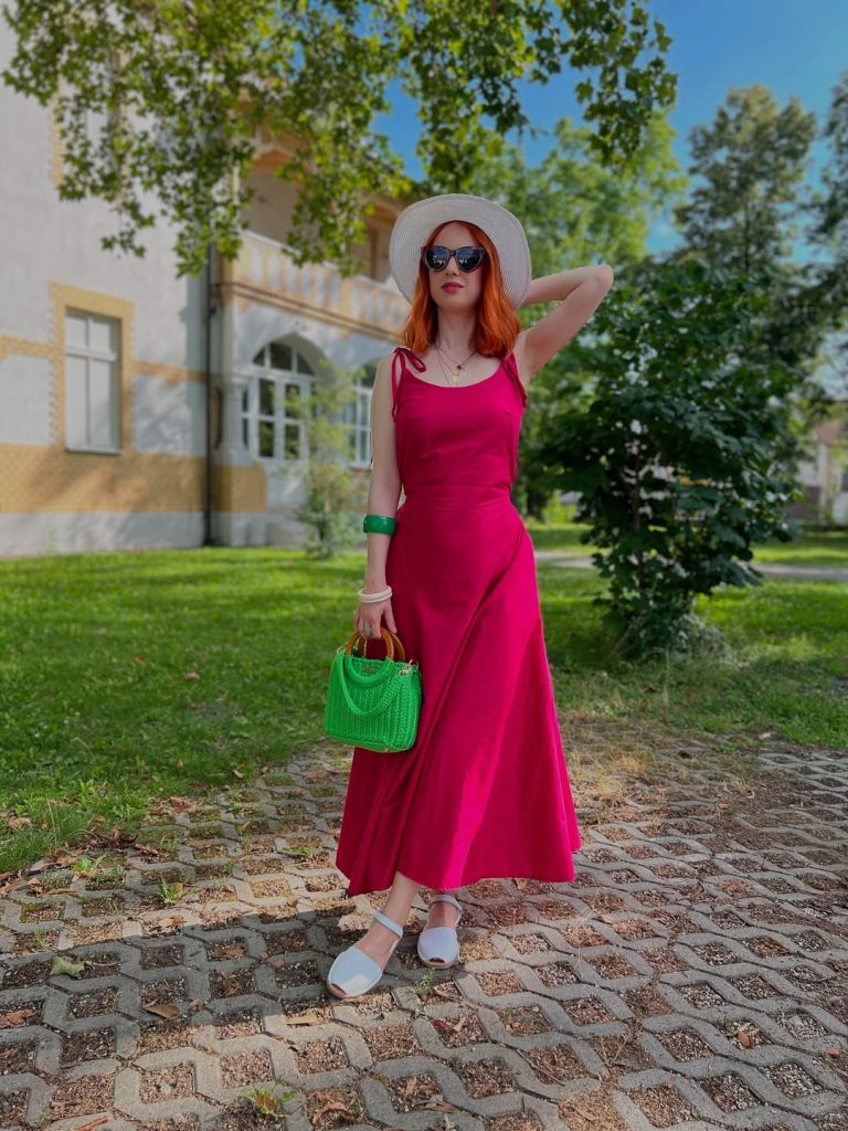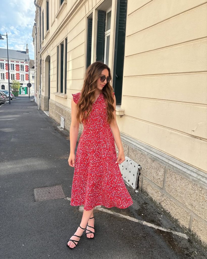 This dress is great for summer weekend gatherings, outdoor concerts, and festival activities. For a more contrasting look, a light white cardigan or bold red lip would be a great addition. However, it’s best to stay away from overly sporty accessories. The look is best with vintage-inspired ones. To keep the style cohesive, a cute gold anklet would be a nice personal touch.