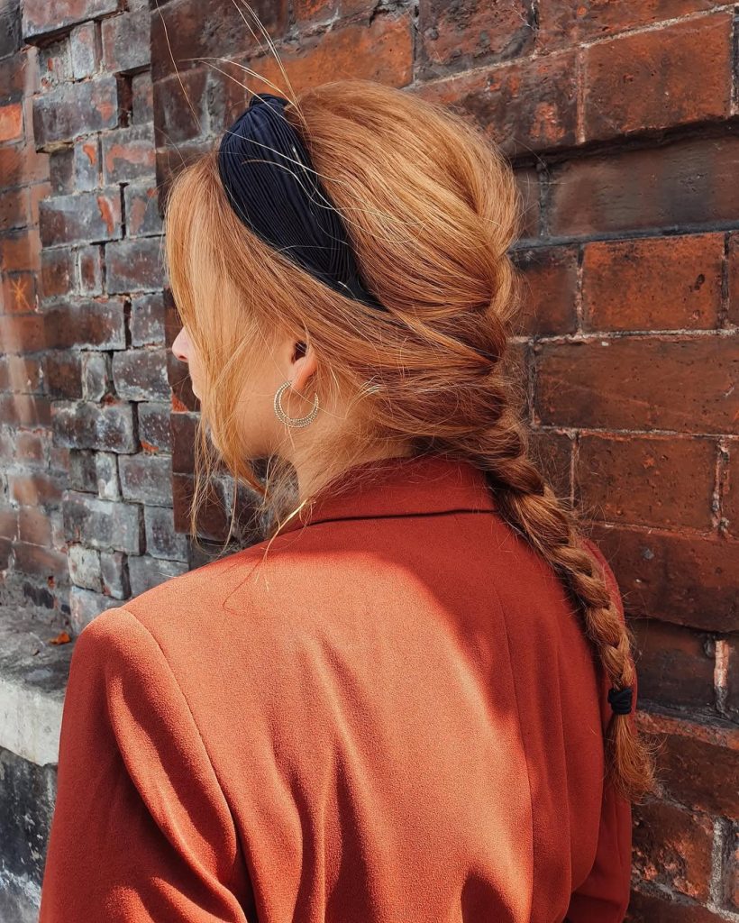 A low side braid paired with a headband feels thoughtful and quietly chic. The braid keeps everything controlled, while the headband draws attention away from oily roots and adds personality. This look has a calm, almost cozy mood to it—perfect for days when you want to feel put together without looking overly styled.