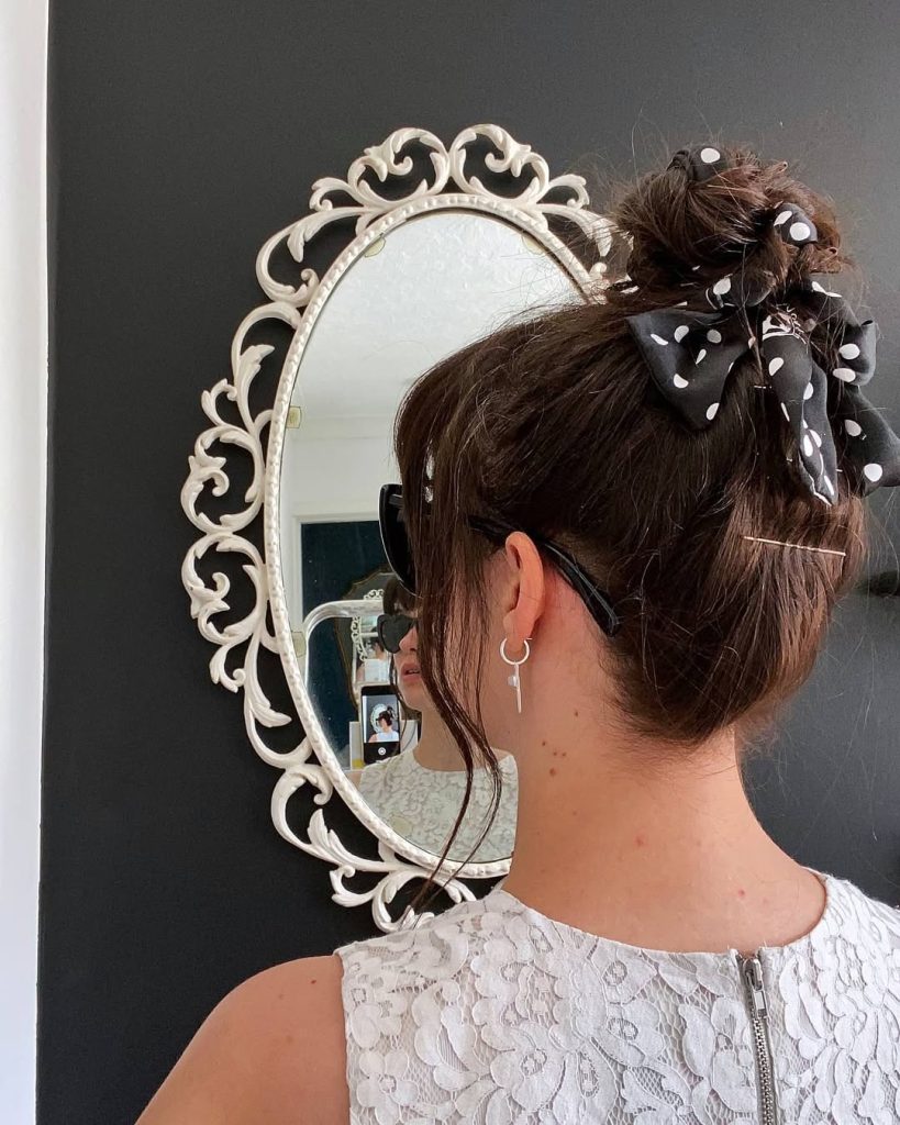 A messy bun paired with a bow instantly turns a greasy hair day into something charming. The loose shape feels relaxed and approachable, while the accessory adds softness and intention. It’s playful without being childish and has that effortless “I meant to do this” vibe.