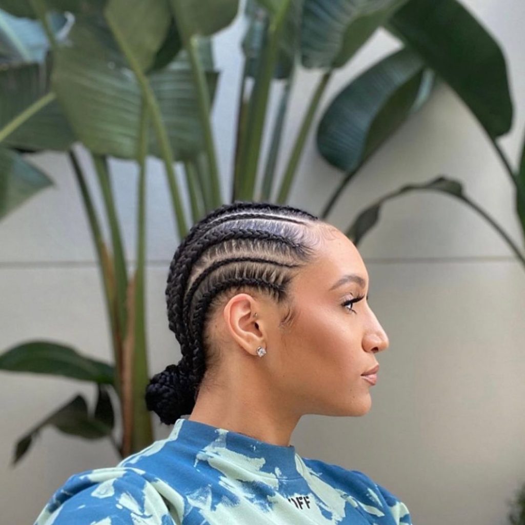 This sleek cornrow style feels bold, confident, and beautifully structured. The smooth, tight braids embrace greasy roots instead of hiding them, turning shine into definition. The low bun at the back keeps the look grounded and elegant, giving it a strong, composed presence.