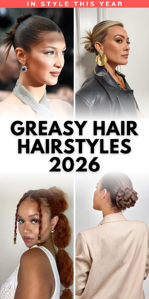 Everybody has greasy hair days, and as of 2026, there’s no need to hide it. The biggest hairstyle trend right now is working with your texture and oil levels rather than against them. From ultra-sleek buns to straightforward ponytails and soft, romantic updos, these hairstyles show that greasy hair can enhance the look by adding shine, hold, and structure. The styles that look the most effortless, elegant, and contemporary are the ones that don’t freshly wash their hair.