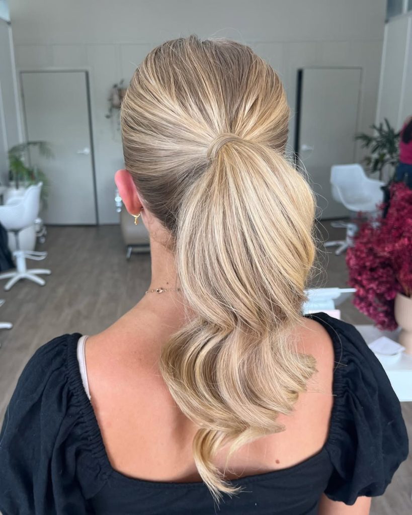 2. Sleek Blonde Ponytail with Soft Wavelength