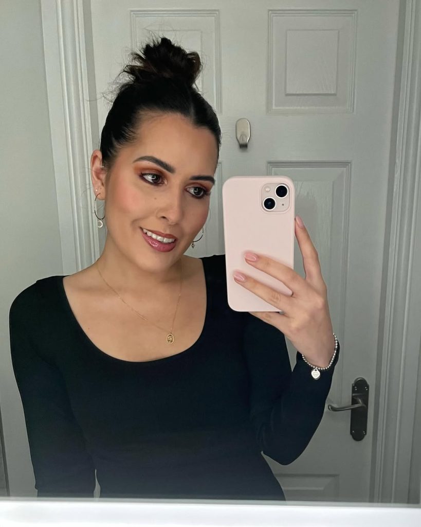 This messy high bun strikes that perfect balance between relaxed and styled. The slicked roots create a clean base, while the bun itself stays soft and a little undone. It feels casual, approachable, and very real—like something you’d wear on a busy afternoon when you still want to look good without overthinking it.