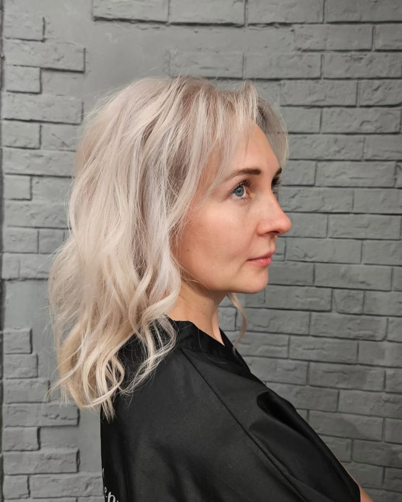 Classic yet youthful, this side-parted bob has that subtle sophistication that flatters any age. The silky smooth finish and gentle asymmetry frame the face beautifully, while the natural volume at the roots keeps it from feeling too structured. It’s the kind of cut that feels as light as your favorite summer sweater—elegant but approachable.
