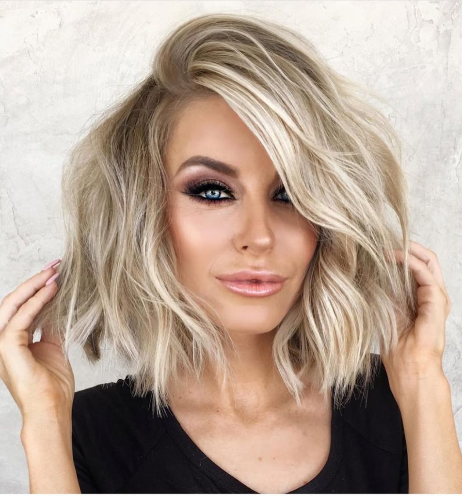 This medium-short style works well for fine or wavy hair. Feathered layers and soft waves help with fullness. The shape also frames the face and flatters both round and heart-shaped faces. Achieving that effortless, voluminous finish only requires a brief diffused blow-dry and a few spritzes of texturizing spray.