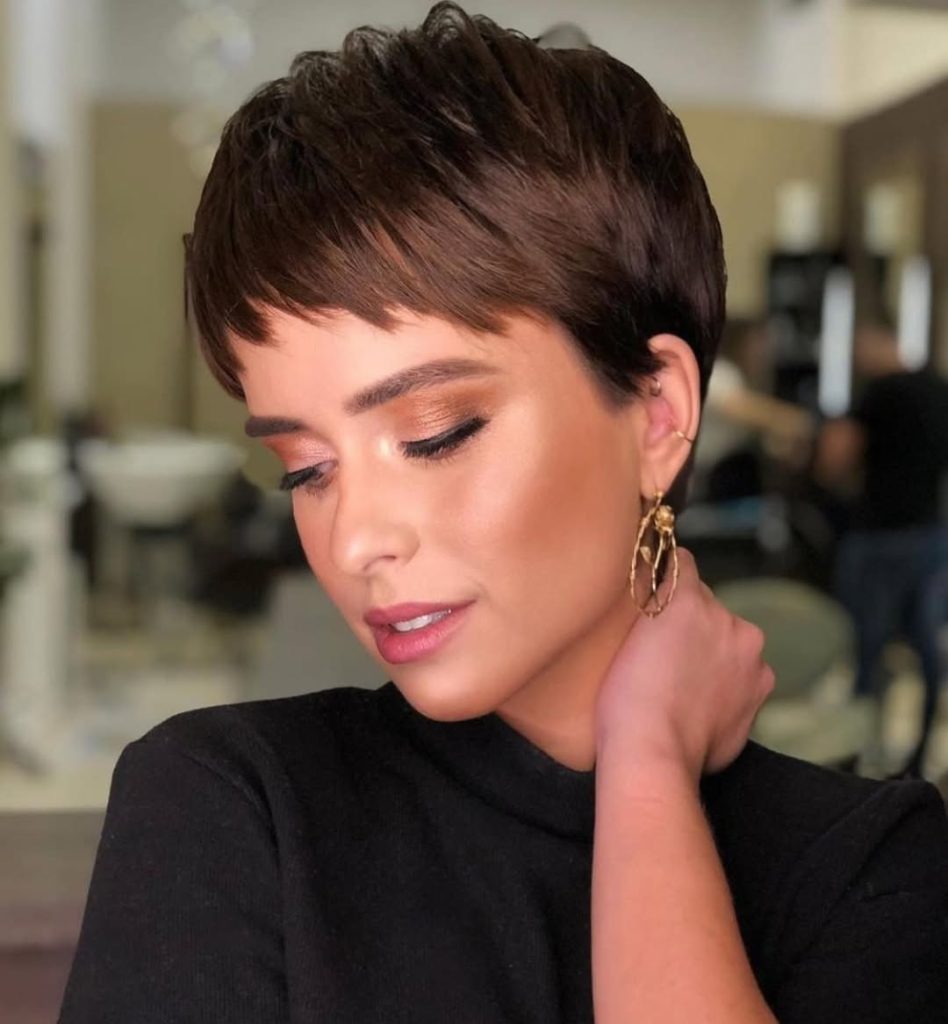 Simple, clean, and beautifully understated—this short brunette pixie is a go-to style for women who appreciate elegance in minimalism. The soft texture adds a feminine touch, while the neat silhouette keeps it fresh and modern. It’s the kind of haircut that radiates quiet confidence and timeless beauty.