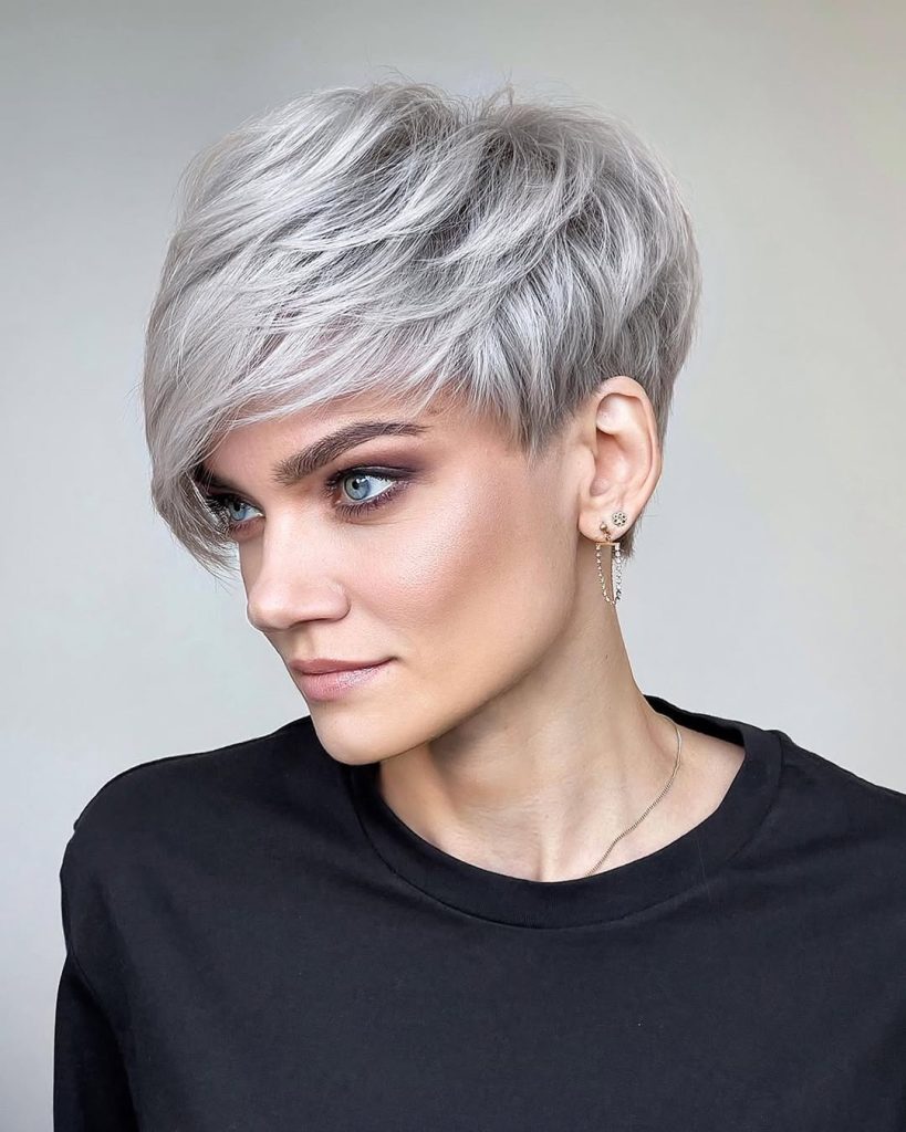 Best suited for fine or medium hair, the short layers add lift and create movement throughout. It’s especially flattering for long faces or women who want to look fuller without much styling effort. A touch of dry shampoo or texturizing spray gives this cut its signature undone volume, perfect for those embracing individuality in 2026.