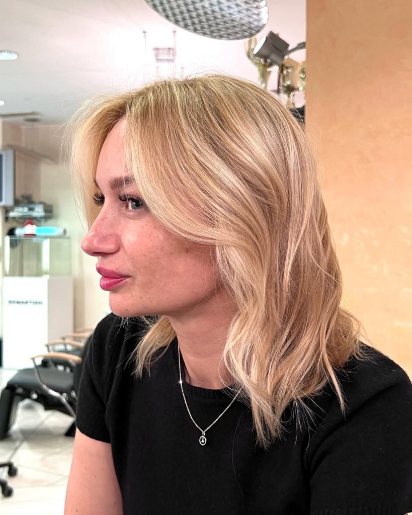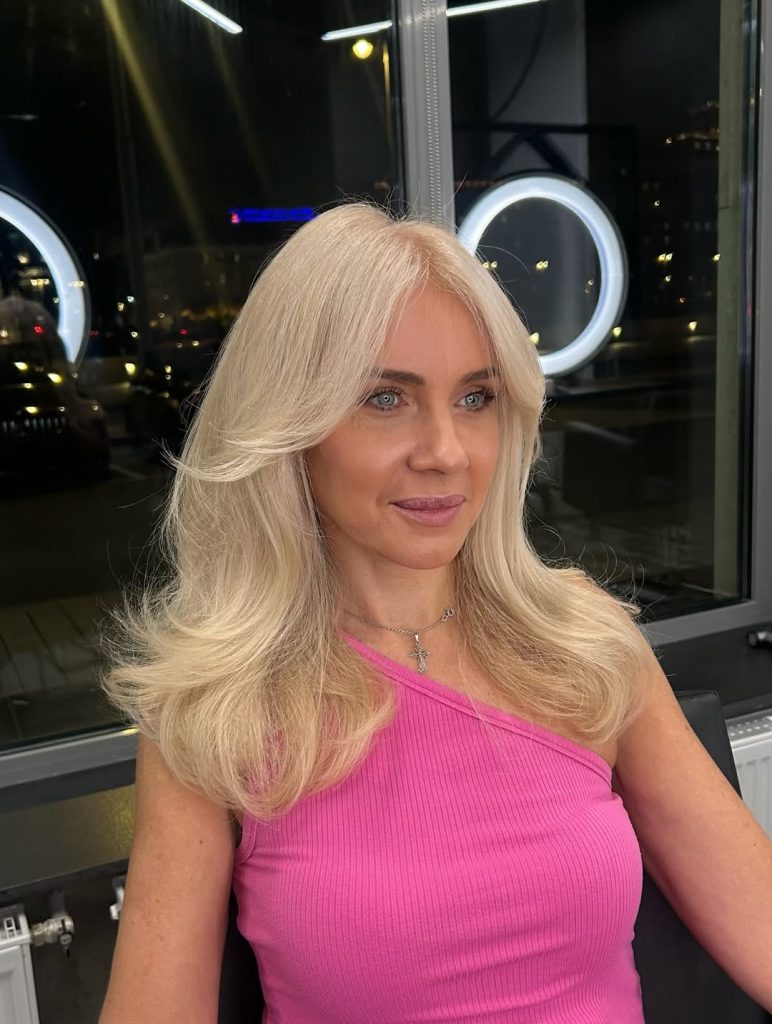 For women with straight or fine medium hair, this mid-length style adds natural lift through gentle face-framing layers. The shape works particularly well for round faces and can be styled easily with a large barrel brush and lightweight mousse. It’s low-maintenance glamour that always feels fresh and modern.