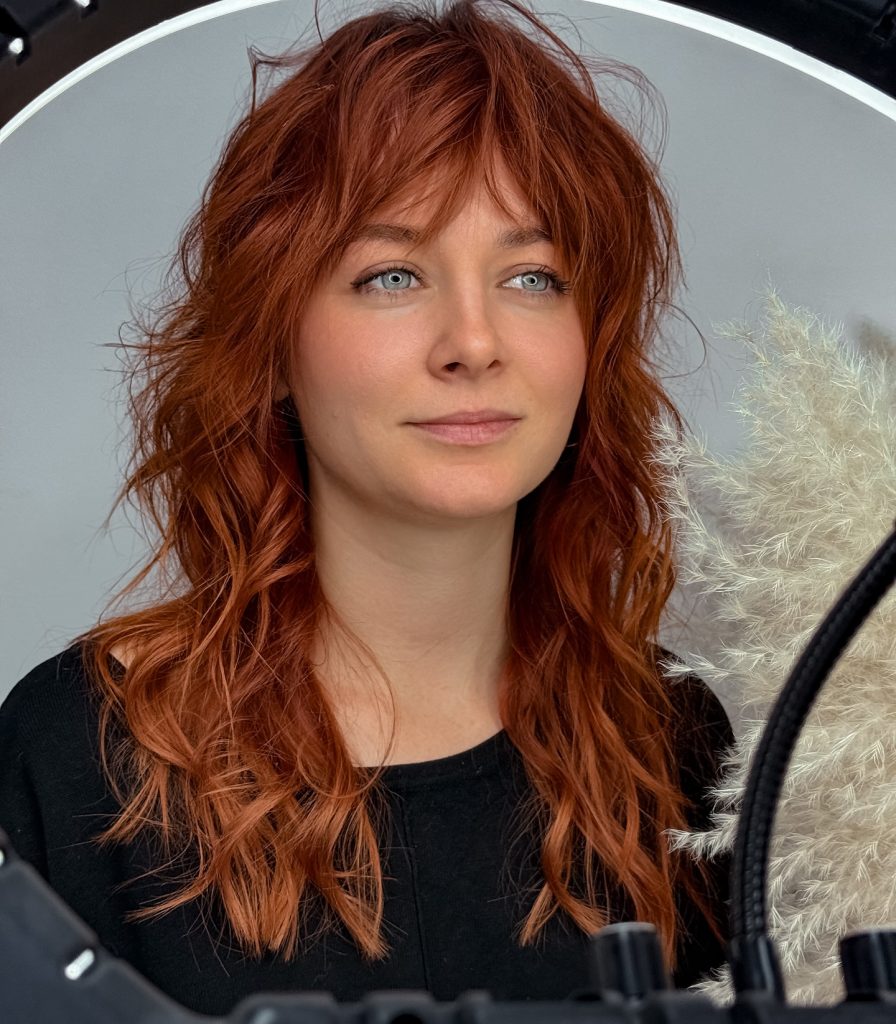 This fiery modern shag captures the spirit of freedom—effortlessly cool, textured, and full of attitude. The combination of shaggy layers and wispy bangs creates a relaxed yet stylish vibe, like the kind of haircut that makes jeans and a tee feel runway-ready. It’s confident, creative, and completely on-trend for 2026.