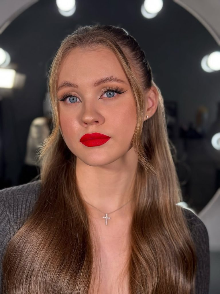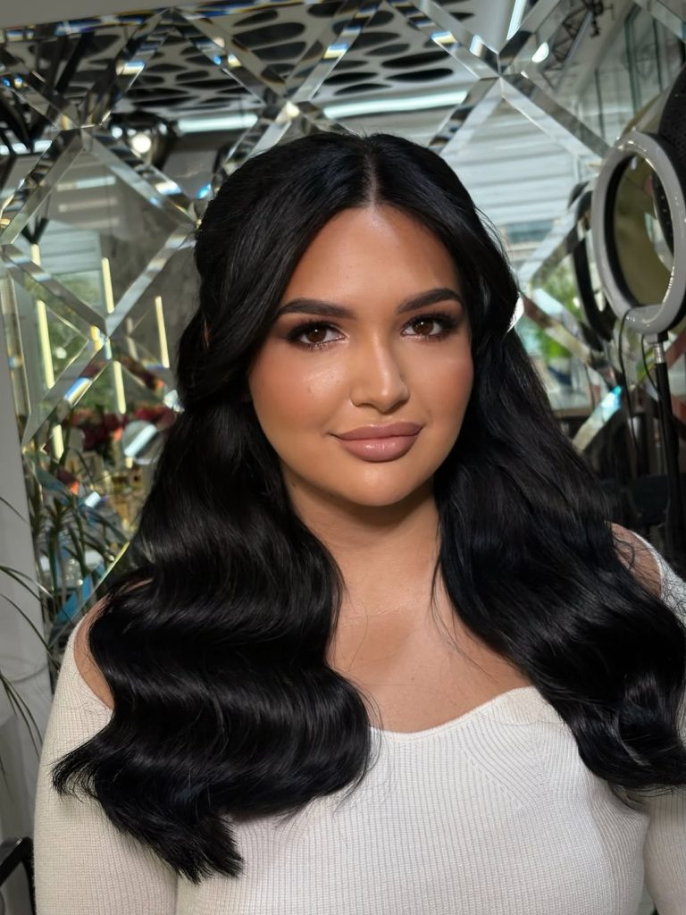 This hairstyle feels fun, confident, and unapologetically youthful. A high ponytail like this instantly lifts the face and brings energy into the overall look, especially when paired with soft waves through the length. It has that “special occasion but still me” feeling—polished enough to turn heads, yet relaxed enough to feel wearable and modern.
