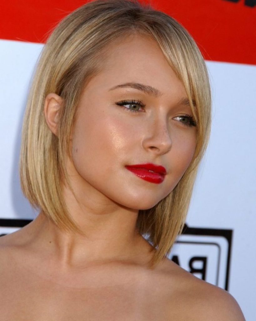 This cut is one of the best options if you want a shape that subtly elongates round faces. It works especially well for fine to medium hair and anyone who prefers short hair with a sleek finish. A side part keeps it modern, while a quick blow-dry with a round brush makes it easy to maintain. It’s also a great short bob choice for women over 50 who want structure without stiffness.