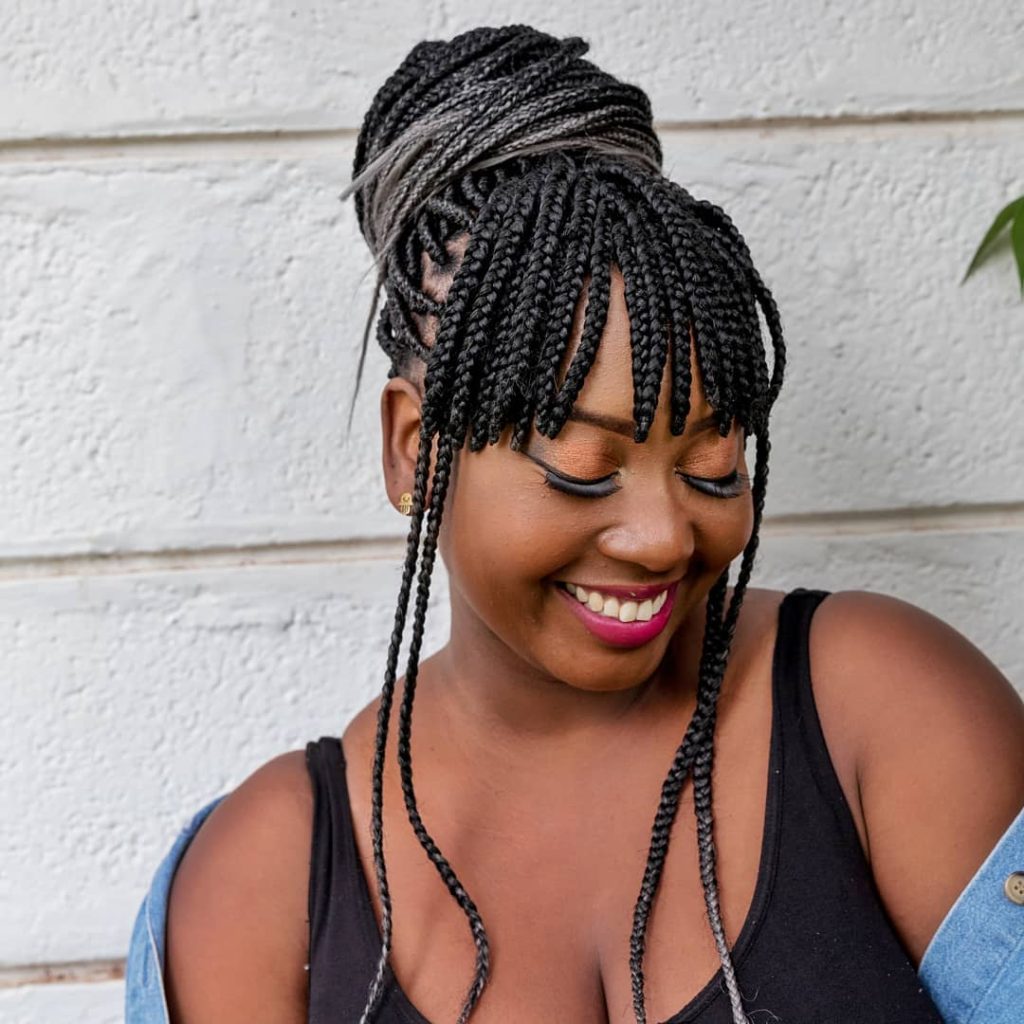 There’s a joyful, expressive quality to this braided style that makes it instantly memorable. The updo keeps everything neat and elevated, while the soft braided fringe adds personality and warmth around the face. It feels celebratory, stylish, and full of character—the kind of hairstyle that reflects confidence and individuality.