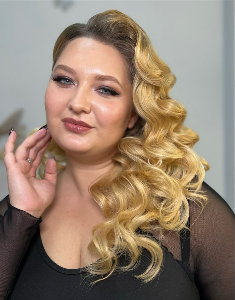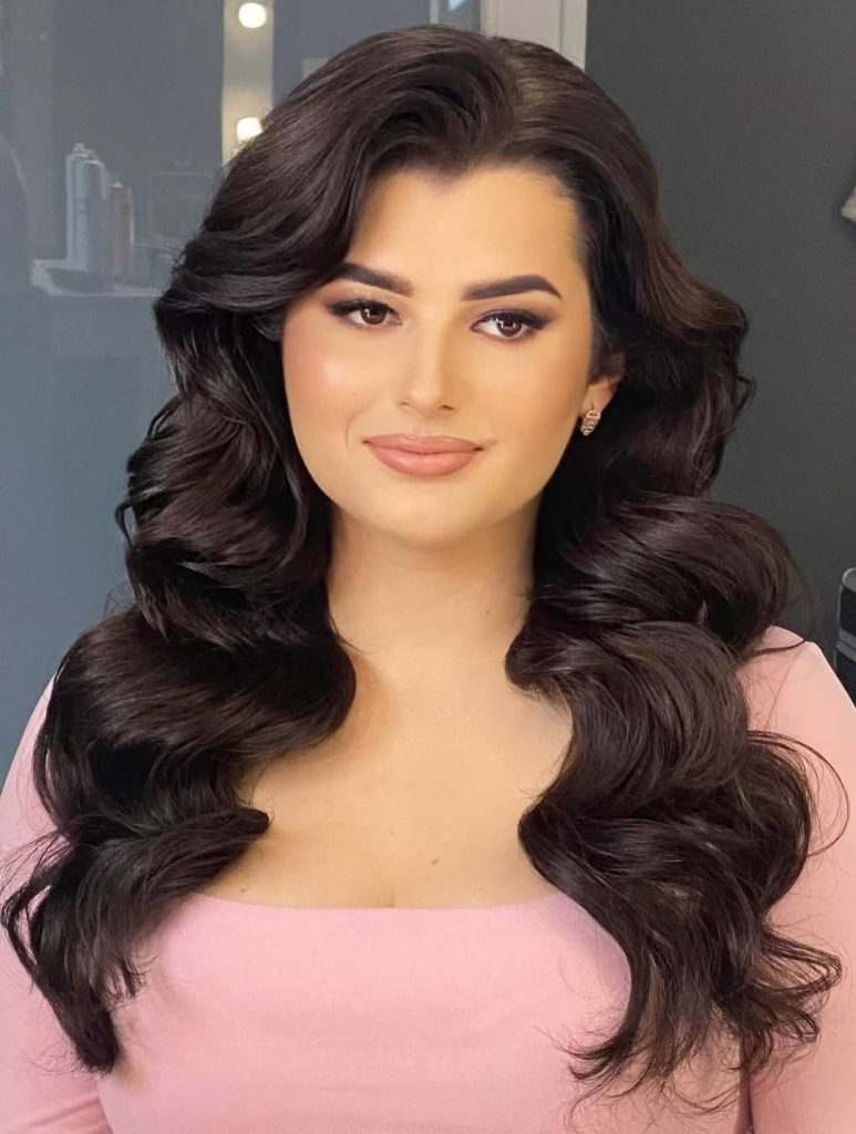 This style is especially well-suited for plus-size women and anyone with a round shape who wants more definition. The side part creates angles that visually slim the face, while the volume keeps the look balanced. It works best on long hair or thicker textures and holds up beautifully for events. If you’re choosing between sleek and voluminous styles, this one offers the most visual impact with surprisingly straightforward styling.