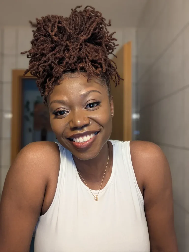 This dreadlocks style is perfect if you have shorter locs and still want versatility. The ponytail lifts the face, and the thickness adds natural volume. It’s an easy everyday look that doesn’t require much fuss but still makes you feel put together.