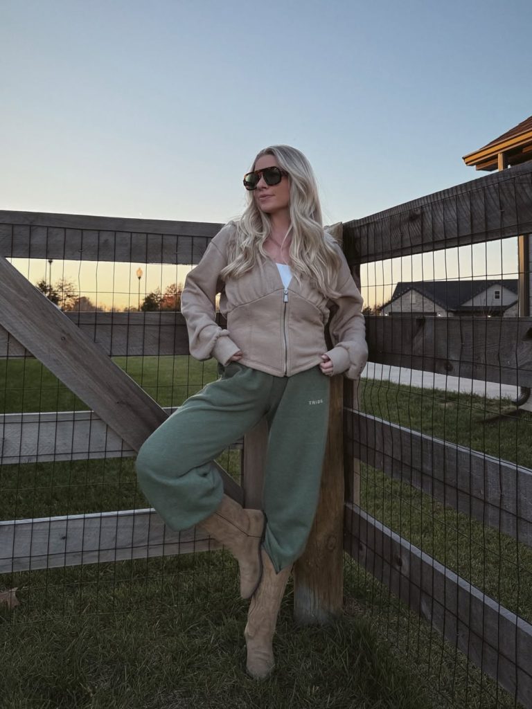 This outfit blends countryside charm with relaxed sports-mom practicality. Add a baseball cap for a football or soccer field vibe or a boho canvas tote for personality. Avoid pairing with athletic sneakers—the boots give it unique character. Perfect for chilly fall afternoons, pumpkin patches, or outdoor summer bonfires. Style experts at Refinery29 have noted the rise of ranch-athleisure hybrids—this look nails it.