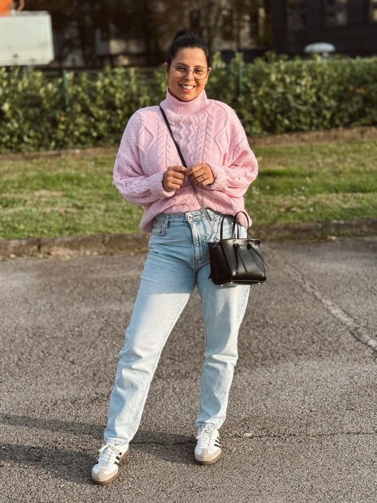 4. Soft Pink Sweater & Light Jeans