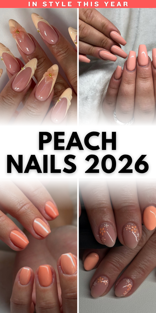 Peach nails are having a major moment in 2026, blending softness and style with a hint of playful charm. This color’s warm undertones flatter every skin tone, making it the go-to choice for both minimalists and trend lovers. Whether you prefer glossy acrylics, ombré gradients, or delicate floral designs, peach nails offer endless ways to elevate your look. From vacation vibes to wedding-ready polish, these stunning ideas showcase why peach is this year’s must-try shade for elegant, feminine manicures.