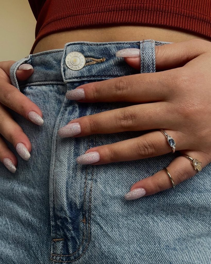 This nail art has such a delightful and quiet attractiveness to it that the soft glitter nails sparkle to perfection without going overboard to the point that it gets too loud. Additionally, the use of the natural pink color seems to be perfect since it adds that youthful feel to the whole look.