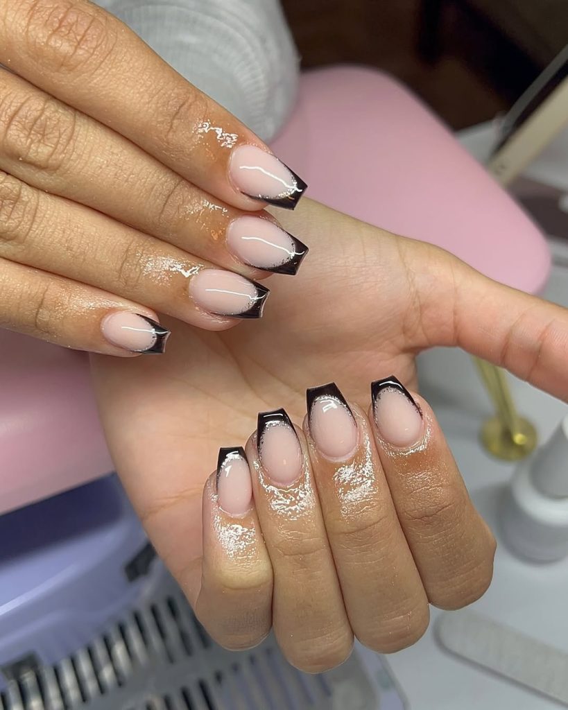 This nail art provides complete confidence—complete with black paint that glistens with gold accents that go all the way to the tips. The nude color combination with white and darker black is complete perfection in terms of contrast. This is the perfect French tip with glamorous nails that look perfectly balanced. If you like designs that are black with an edgy and sophisticated look, then this design is ideal.