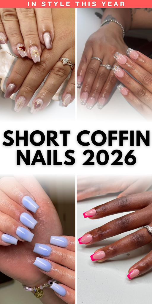 Short coffin nails are one trend that is taking 2026 by storm, and it’s no wonder. These nails are sleek without going overboard, fashionable without feeling ridiculous, and ideal for women who want to be perfectly polished yet blend seamlessly with daily activities. Whether you’re feeling soft and dramatic with an ombré look, making a statement with pops of color, going minimalist with some delicate artwork, or adding just that hint of sparkle to your look, there’s no end to the ways you can use these short coffin nails to express your personal sense of style without sacrificing comfort and class. Within this collection, discover new and exciting inspiration that screams confidence and looks great without trying’ perfection—inspiration that you can take with you to either the office or an evening out on the town.