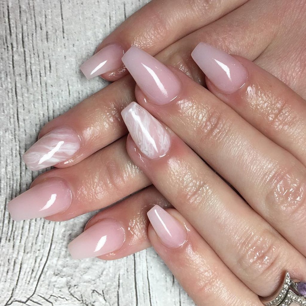 This look has such a soothing and serene appeal to it—the baby pink color reminds one of something clean and fresh. The gradient effect with one marble accent nail has such a lovely and subtle impact that it has tremendous class to it. It’s one look that will never go out of style—adding that certain subtlety to one’s hands without making it look too boring. If you like your ideas to be easy-to-understand concepts with just the slightest taste of design, then this is definitely the best inspiration collection.