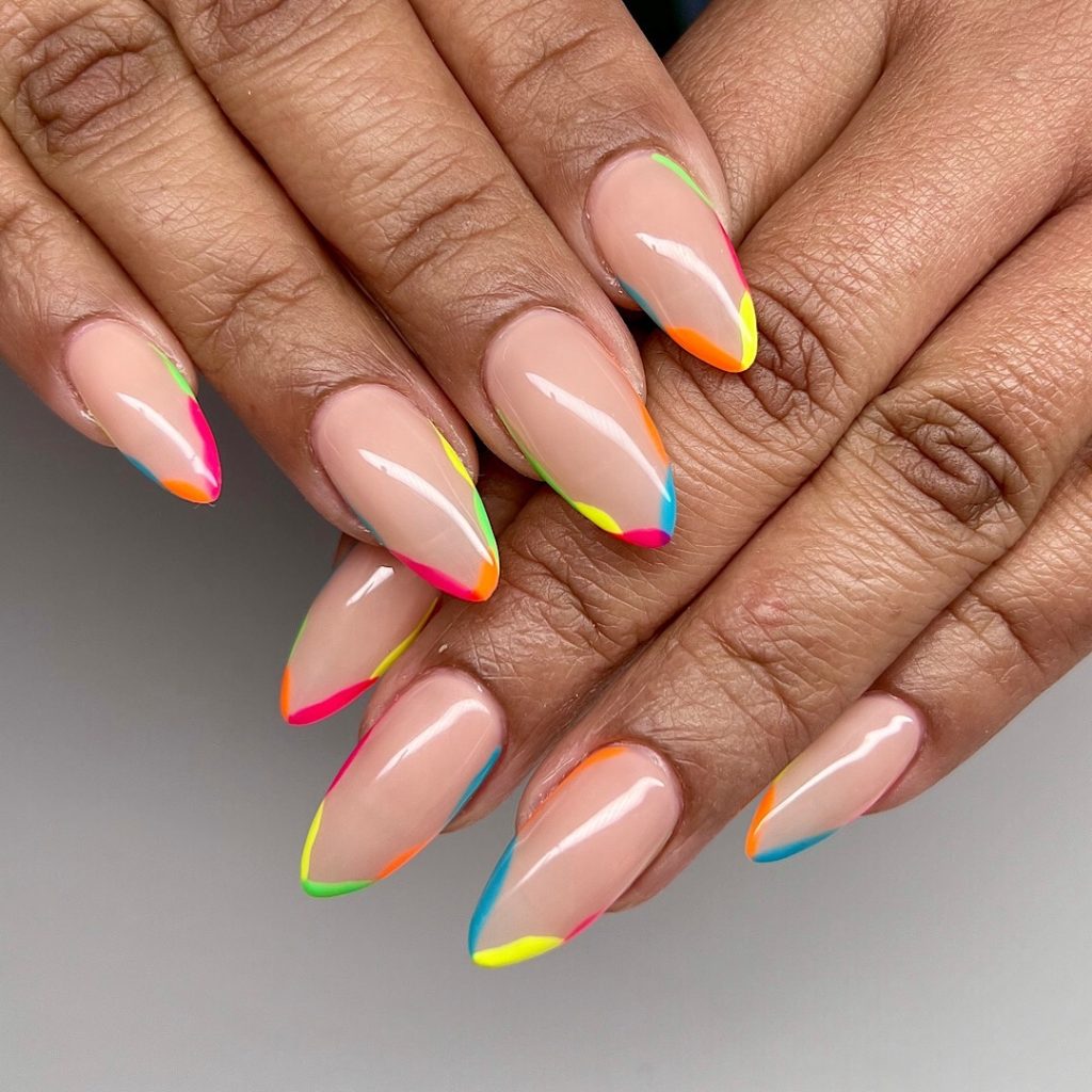 This manicure feels playful without losing its elegance. The neutral base keeps the look light and airy, while the colorful French tips add personality and movement. Each nail feels slightly different, which gives the whole set a fresh, creative vibe—perfect for spring days that feel full of possibility.