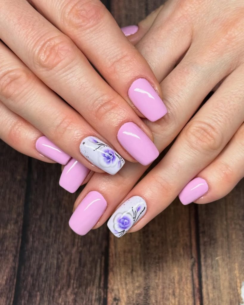 This manicure feels clean, modern, and quietly playful. The soft contrast between pink and lilac creates a fresh spring rhythm without relying on patterns or heavy art. It’s simple at first glance, but the color pairing adds just enough personality to make the look feel intentional and stylish.