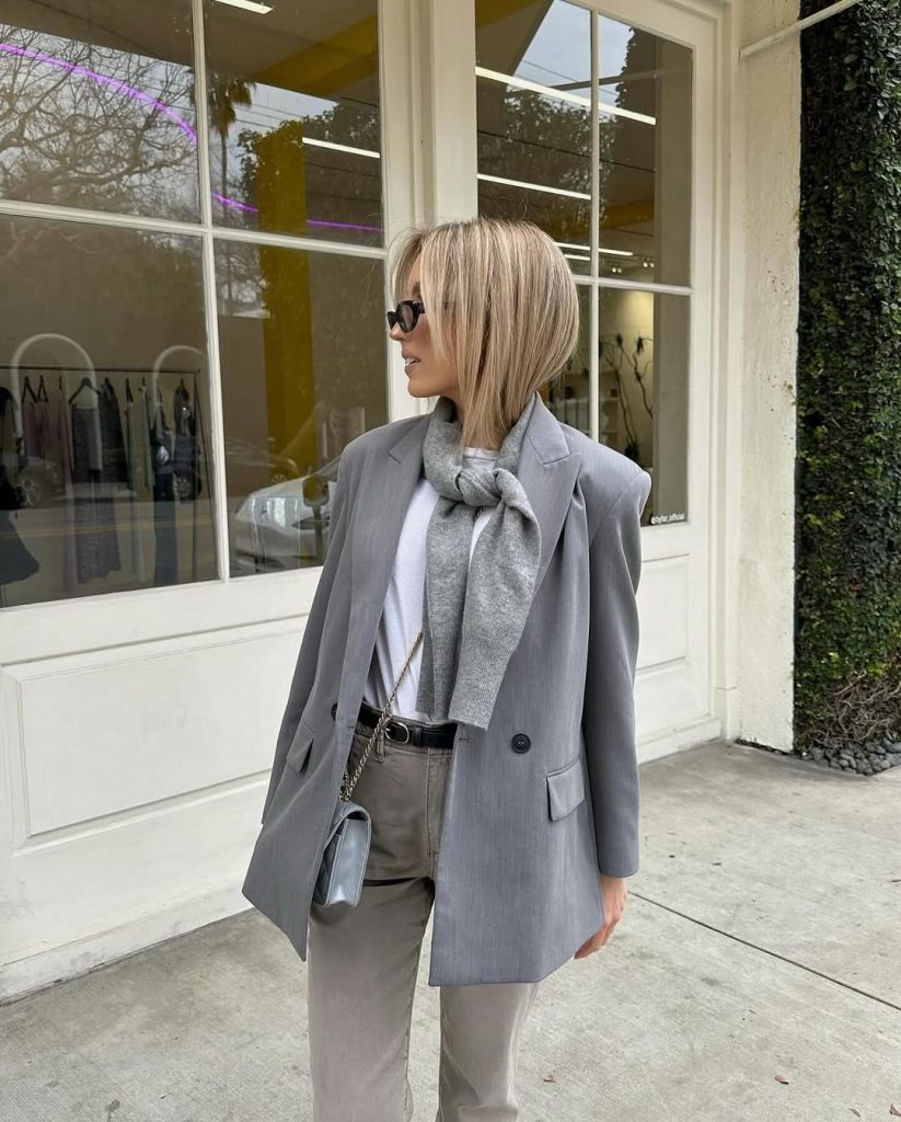 A sharp silhouette meets soft neutrals, creating an outfit that feels intentional, confident, and quietly powerful.