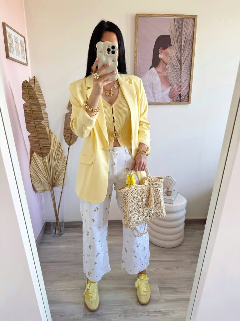 - Pastel yellow tailored blazer
