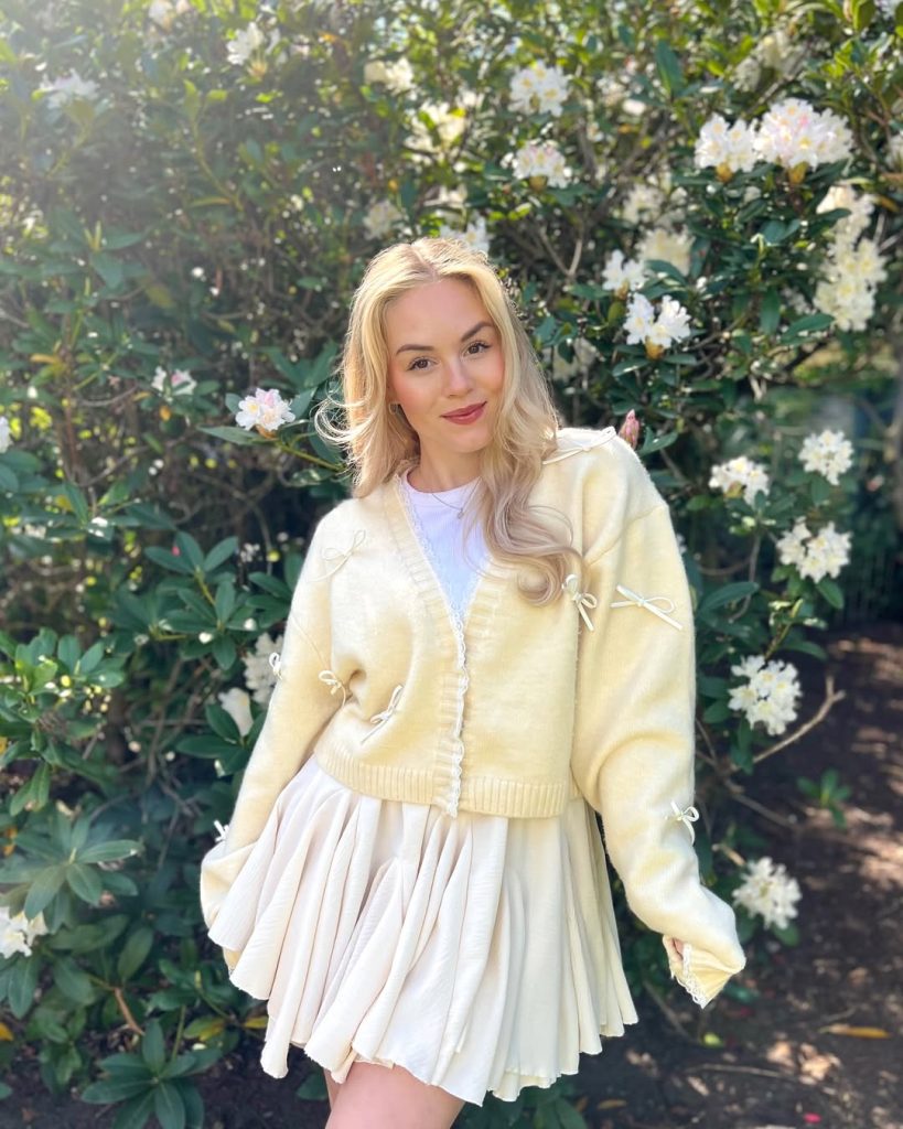 This outfit feels perfect for garden walks, relaxed brunches, or spring afternoons in Florida or Hawaii when the sun does most of the styling. Add personality with a woven bag or delicate sandals. Avoid heavy shoes or dark layers—this look is about airiness and light. A beautiful example of inspiration, blending aesthetic softness with timeless appeal and subtle Beach 2026 energy.