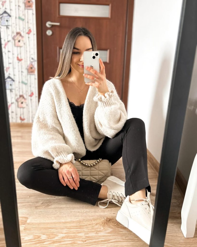 This look shines in warm destinations like Florida, Miami, or Cabo, especially for daytime exploring or casual meetups. Add simple stud earrings or a slick ponytail to keep it balanced. Avoid adding more prints—the charm comes from letting the sweater stand out. A fun, adorable take on Ideas 2026 that still feels wearable.