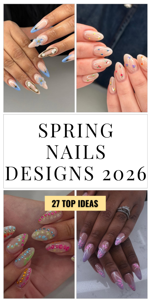 Spring nails in 2026 aren’t about following strict rules—they’re about choosing designs that feel right for you. Whether you’re drawn to soft florals, subtle chrome touches, or bright pops of color, the best manicure is the one that makes you feel polished and comfortable in your style. These ideas show that nails can be expressive without being overwhelming and elegant without feeling boring.