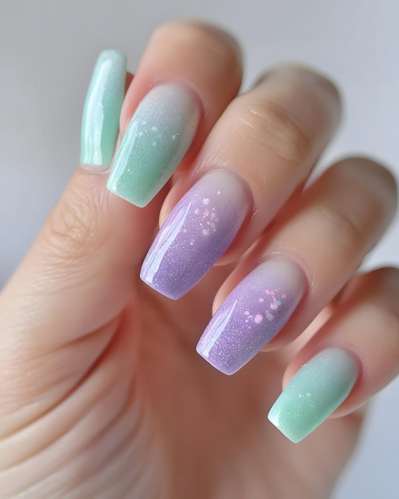 11. Soft pink and blue ombre almond nails are a perfect choice for spring 2026.