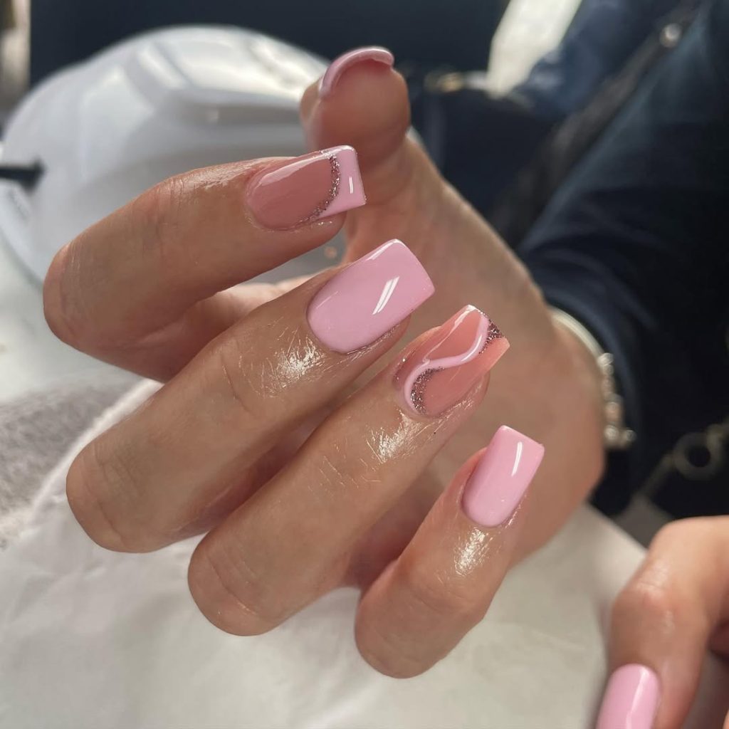 This manicure is all about quiet elegance. The soft pink tones feel clean and refined, while the subtle chrome accent adds just enough shine to catch the eye. It’s understated but far from boring—the kind of nail design that feels polished and modern without trying to follow every trend.
