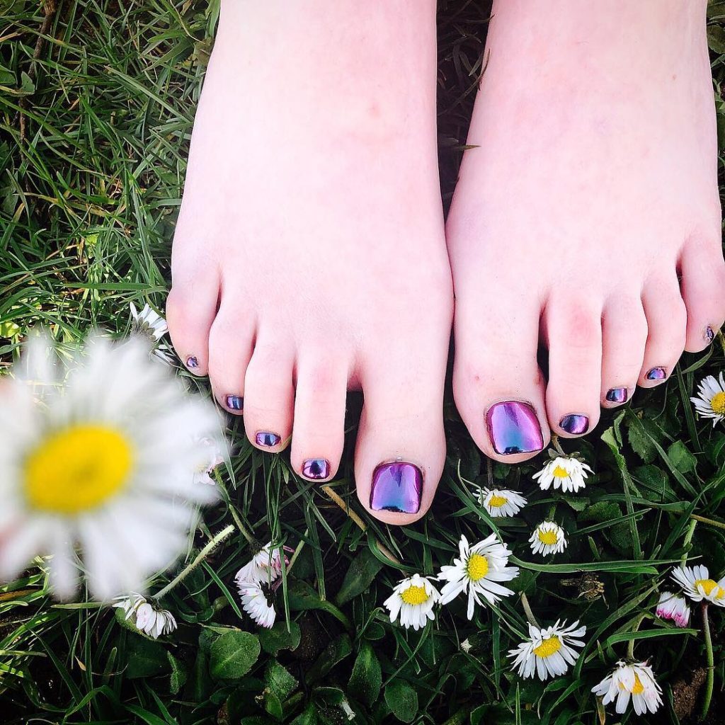 There’s something quietly magical about this look—that soft metallic purple catching the light as if it’s part of the season itself. It feels playful but not loud, feminine without being overly sweet. This toenail choice instantly evokes a springtime mood, evoking a feeling of effortless elegance, even in the smallest details. It’s one of those Designs that doesn’t try too hard yet still feels special, like a personal indulgence you smile about when you glance down.