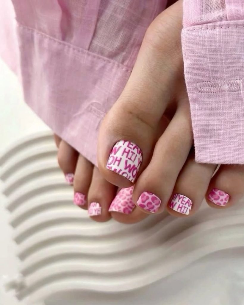 17. Playful Pink Graphic Letter Pedicure
