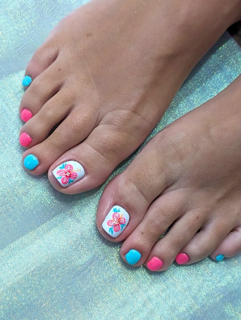 18. Tropical Pink and Blue Floral Pedicure