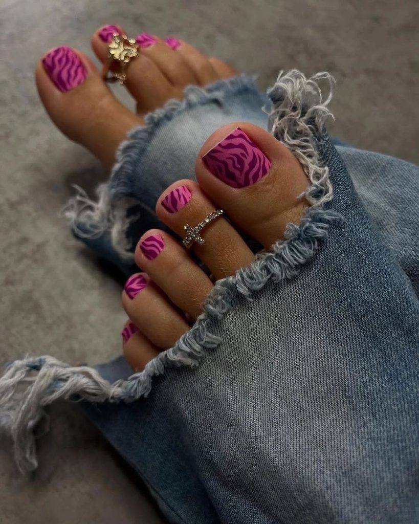 21. Bold Pink Zebra Pedicure with Modern Edge