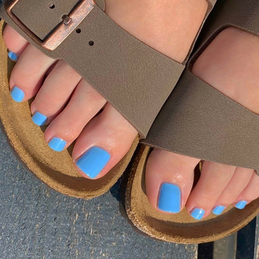 If you appreciate low-maintenance beauty, this pair is a perfect match. Blue is one of the most wearable colors for summer pedicures, especially in 2026, with ideas leaning toward clean, fresh designs. It pairs beautifully with neutral footwear and works for women who want something Bright yet understated, without constant touch-ups.