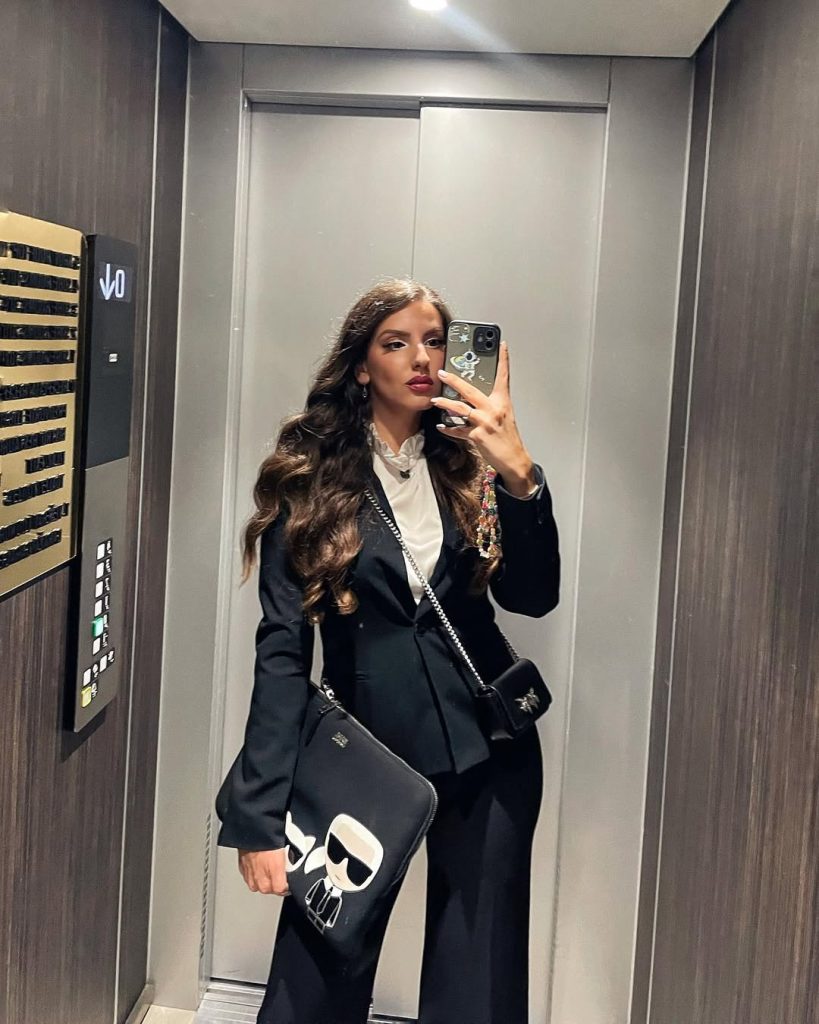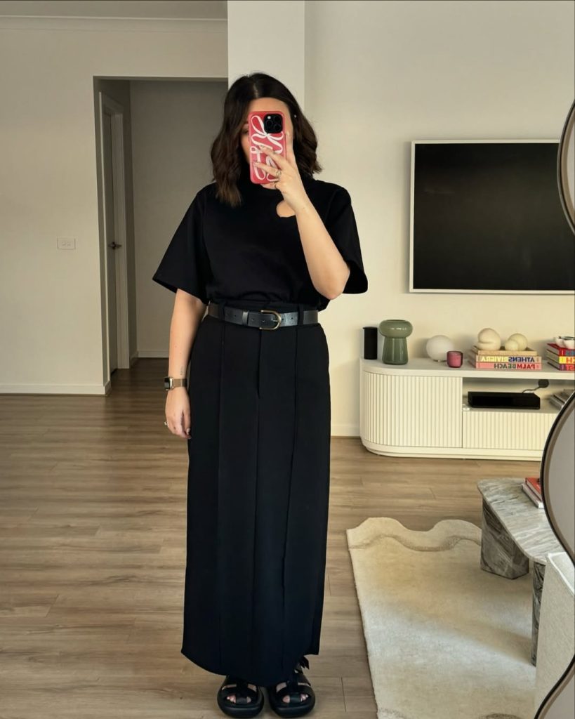 A complete black outfit demonstrates that in women’s office wear in 2026, simple is definitely not boring.