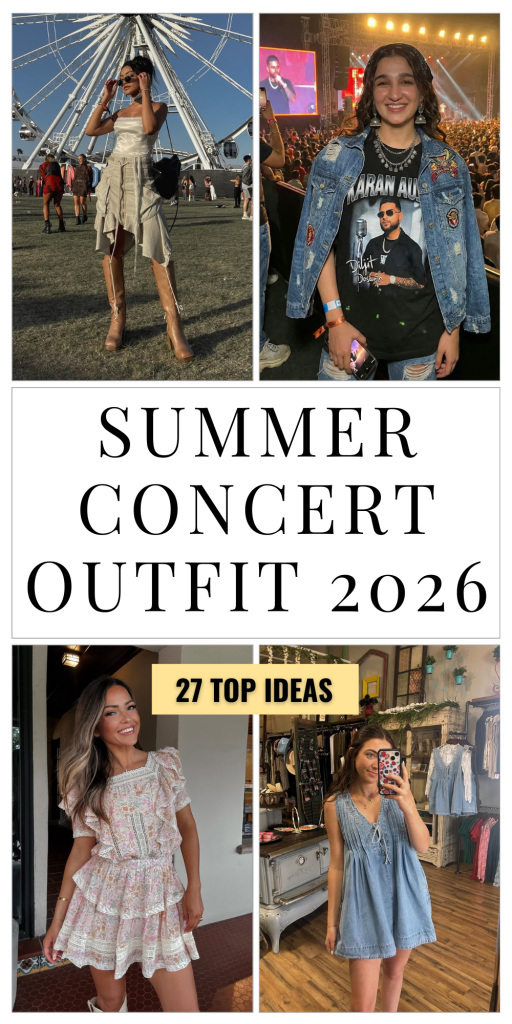 From relaxed denim dresses to bold western boots, sleek night outfits, and expressive festival looks, these summer concert outfit 2026 ideas show just how versatile concert fashion can be. Some styles lean toward boho charm, others channel classic rock attitude, while many blend casual comfort with modern statement pieces.