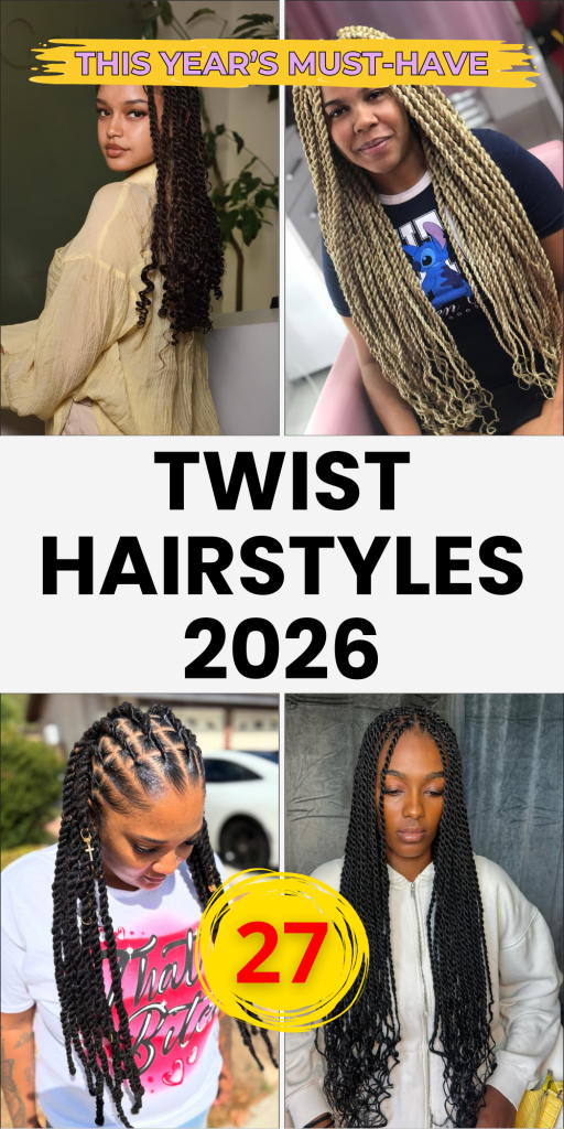 Below you’ll discover 27 twist hairstyles for 2026 that feel modern, flattering, and full of personality. These styles prove that twists are not just practical—they are also stylish, expressive, and perfect for anyone who wants to celebrate natural beauty with confidence.