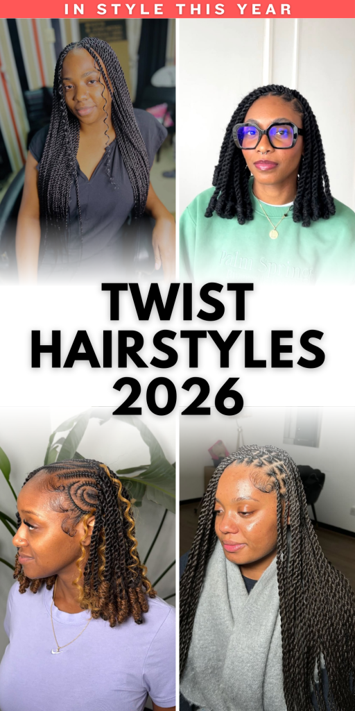 Twist hairstyles remain one of the most reliable and beautiful protective styles for natural hair. They combine practicality with creativity, allowing you to enjoy low-maintenance hair while still expressing your personal style. Whether you prefer sleek Senegalese twists, bold Marley textures, or soft boho curls, the options in 2026 are more diverse than ever.