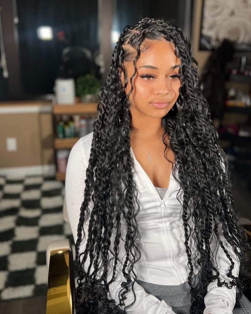 Women who desire both the neat structure of braids and the softness of curls will find this hairstyle ideal. It works beautifully for Natural hair because the curly ends blend naturally with textured strands. The curls add movement, making the style feel lighter and more playful than classic twists. A curl refresher spray keeps the ends defined, while a little scalp oil keeps everything healthy and polished throughout the life of the style.
