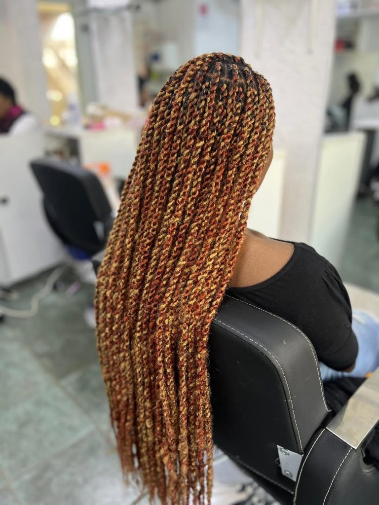 This look is perfect for women who want their twists to feel lively and dynamic. The color variation adds depth, making the twists appear fuller and more textured. It works beautifully on Natural hairs and especially complements warm skin tones. The loose curls at the ends soften the overall style, creating a balance between structured twists and flowing movement that feels both trendy and timeless.