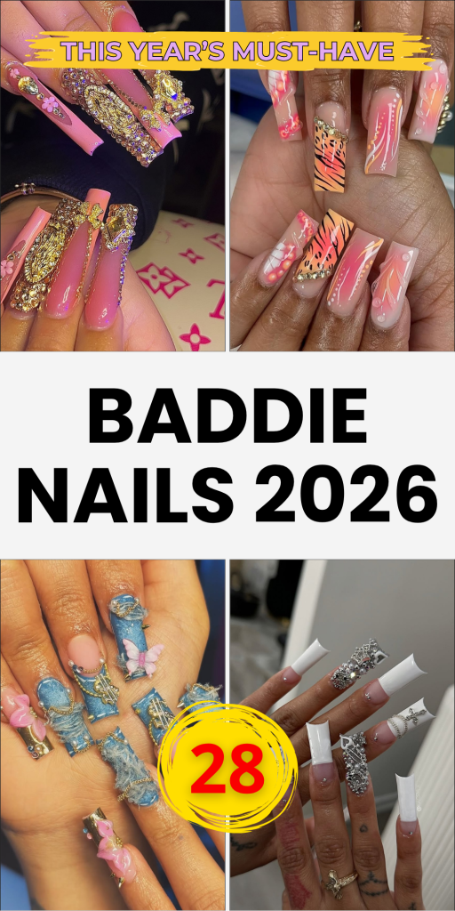 28 Baddie Nails Ideas 2026 – Trendy Acrylic and 3D Designs for Bold Looks